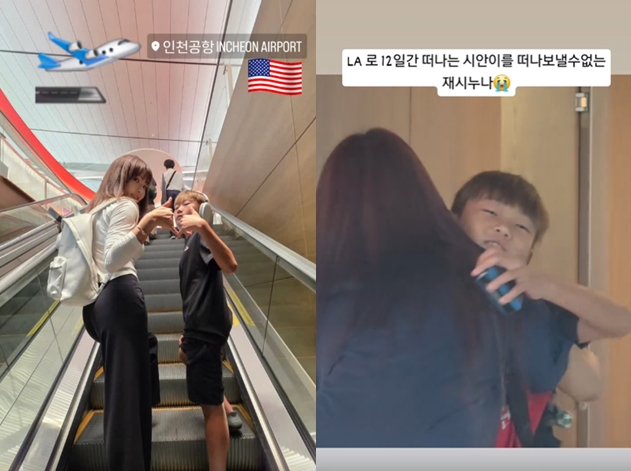 이어 "빵 주세요"라는 글과 함께 대기를 기다리는 중인 모습도 함께 올렸다. 또한 엄마와 함께 나란히 서 포즈를 취하고, 누나 재시와는 포옹을 하는 등 다정한 모습이 눈길을 끌기도 했다. 두 사람은 미국 LA로 12일간 떠났다.