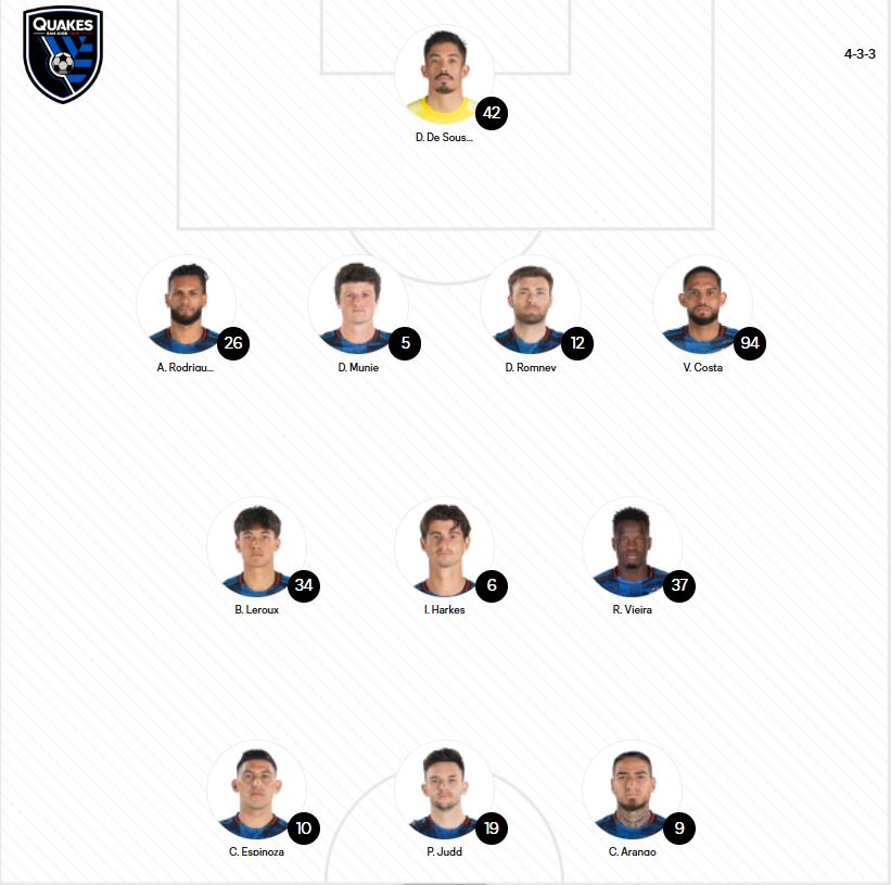 이에 맞서는 홈팀 산호세 어스퀘이크 역시 4-3-3 라인업을 꾸렸다.