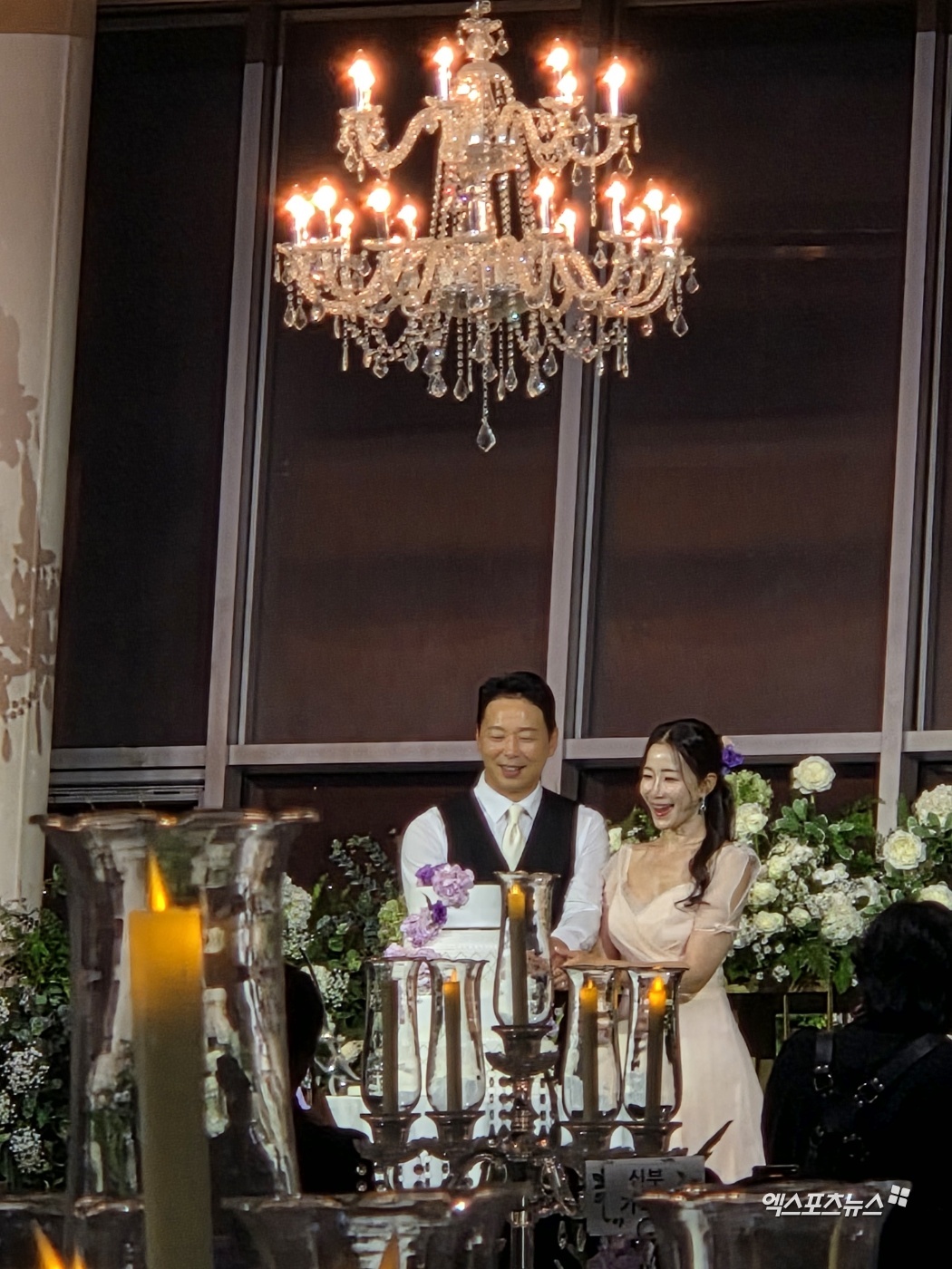 그는 "이제 둘이 하나돼 시작하는 우리 인생의 라운딩에서 홀인원의 행운도 이글의 희열도 버디의 기쁨도 보기의 난관도 평생 당신과 함께하겠습니다. 언제나 든든한 남편이 될 것을 약속드립니다"라고 말해 하객들의 박수를 받았다.