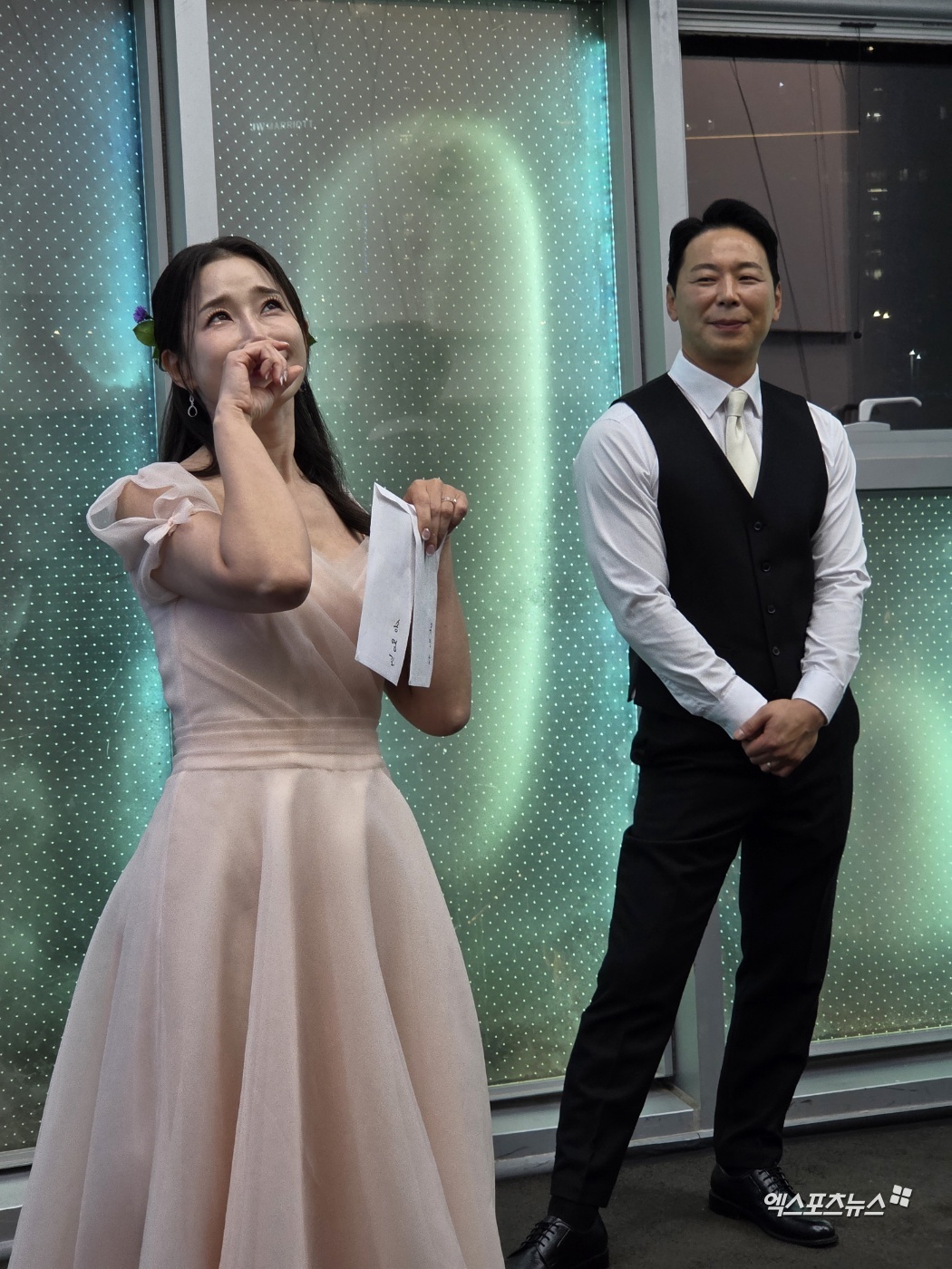 김하영은 이후 절친의 축사를 들으며 눈물을 훔쳤다.