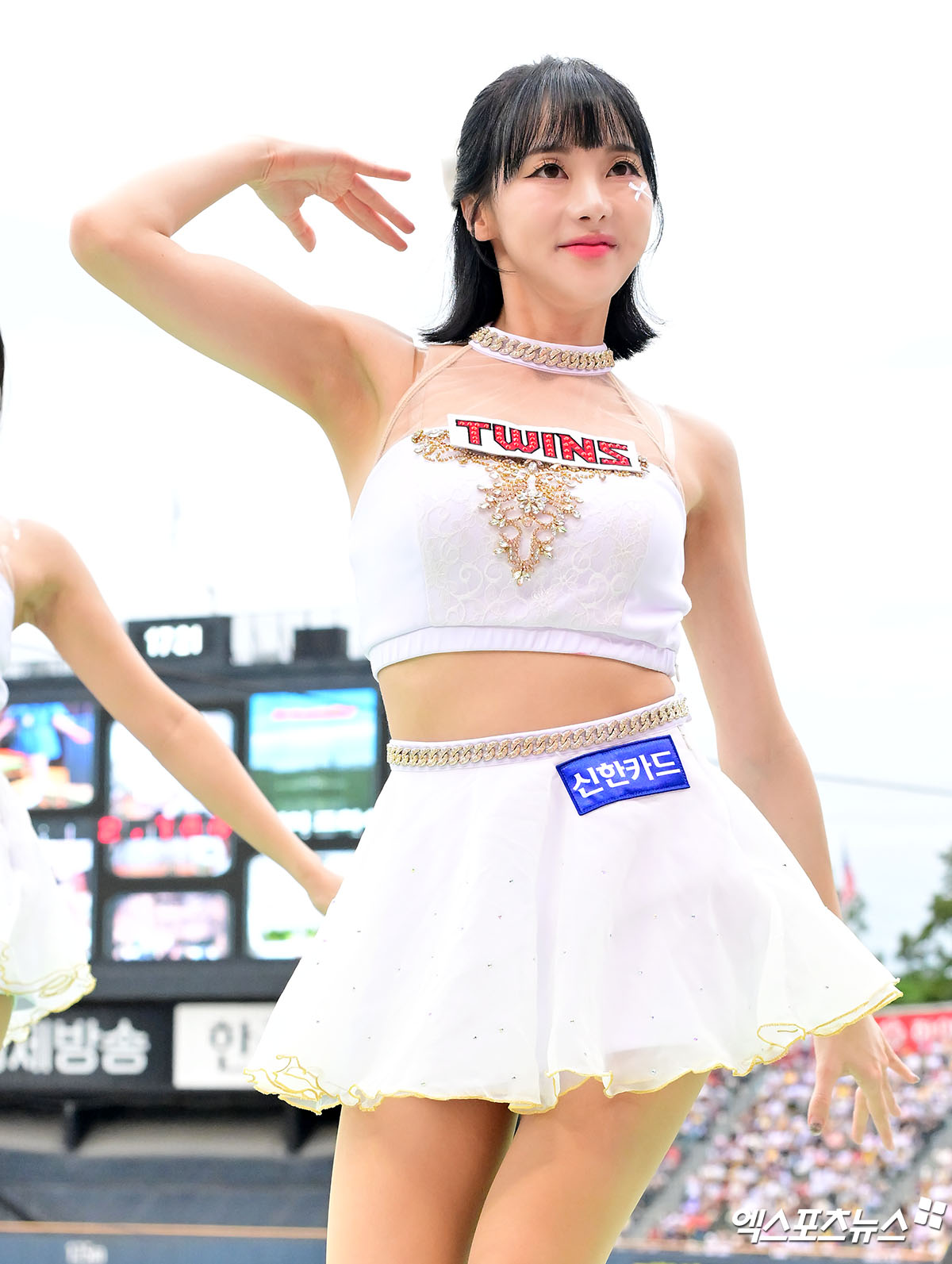 (엑스포츠뉴스 잠실, 김한준 기자) 13일 오후 서울 송파구 잠실야구장에서 열린 '2025 신한 SOL Bank KBO리그' KIA 타이거즈와 LG 트윈스의 경기, 차영현 치어리더가 멋진 공연을 선보이고 있다.