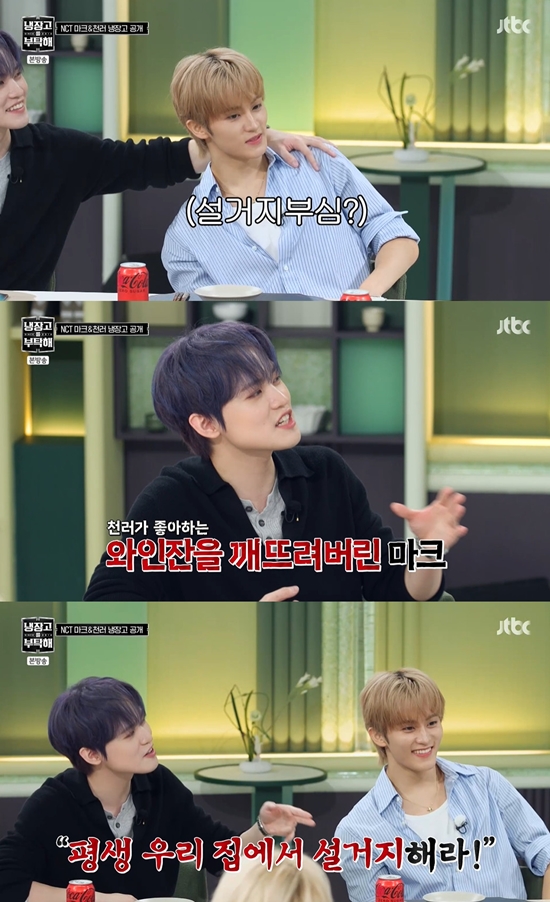 14일 방송된 JTBC '냉장고를 부탁해'에서는 NCT 멤버 천러와 마크의 냉장고가 공개됐다.