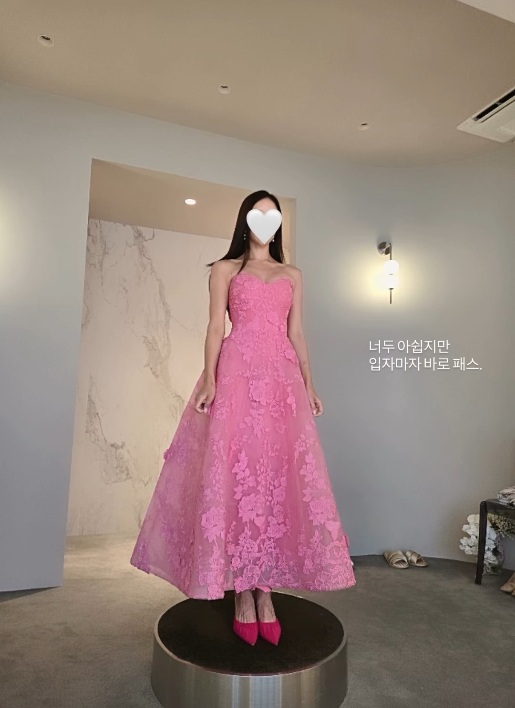 끝으로 원자현은 파격적인 핑크색 드레스를 입고서 인증샷을 남겼는데, "너두 아쉽지만 입자마자 바로 패스"라고 단호한 모습을 보였다.