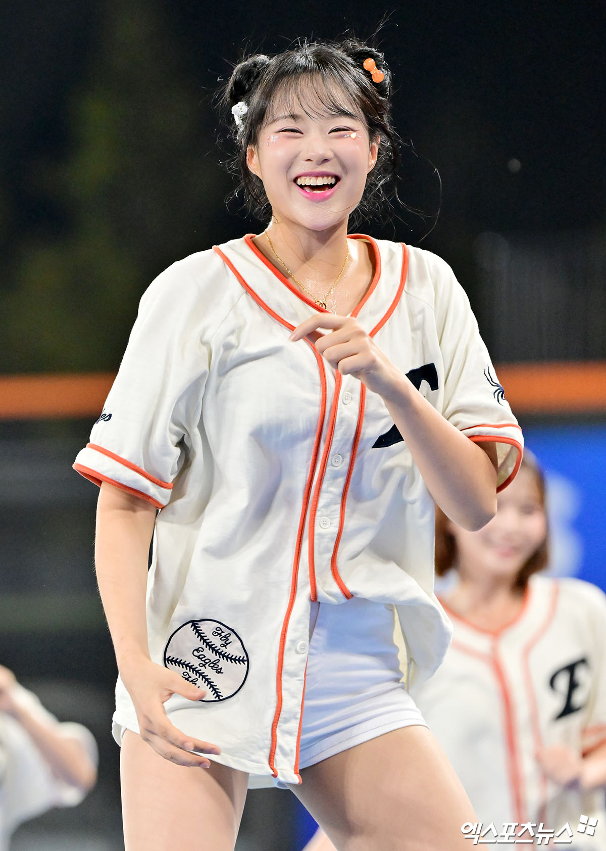 (엑스포츠뉴스 대전, 김한준 기자) 15일 오후 대전 한화생명 볼파크에서 열린 '2025 신한 SOL Bank KBO리그' 키움 히어로즈와 한화 이글스의 경기, 이호은 치어리더가 멋진 공연을 선보이고 있다.