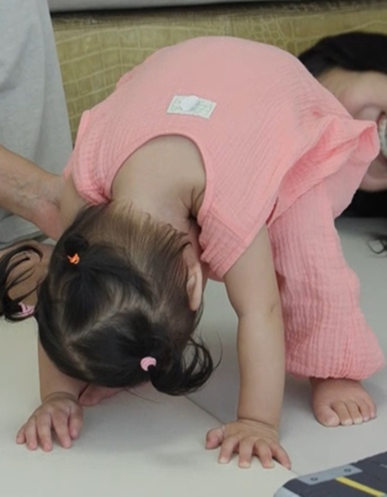이날 방송에서는 김윤지의 딸 엘라가 요즘 자주 한다는 특별한 까꿍 포즈가 공개돼 시선을 사로잡는다. 엘라가 앞구르기를 하듯 머리를 바닥에 푹 숙이는 자세를 선보이자, 할머니 김영임은 "이 자세를 하면 남자 동생 본다는 속설이 있다"라며 깜짝 발언을 해 김윤지를 놀라게 한다.