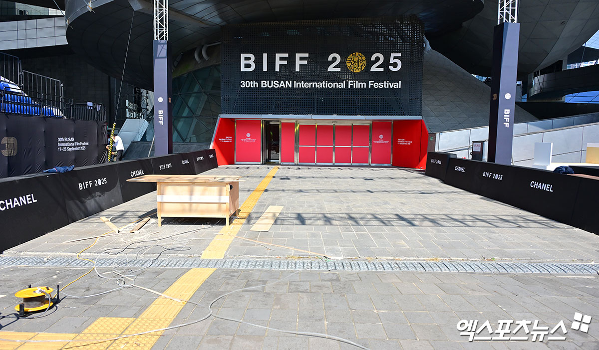 (엑스포츠뉴스 부산, 김한준 기자) 제30회 부산국제영화제(BIFF) 개막을 하루 앞둔 16일 오후 부산 해운대구 영화의전당에서 관계자들이 개막 준비를 하고 있다.