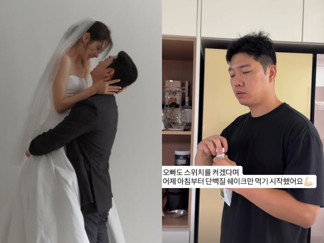 16일 옥순은 개인 채널에 "오빠도 스위치 켜겠다며 어제 아침부터 단백질 쉐이크만 먹기 시작했어요"라는 글과 함께 경수가 담긴 영상을 업로드했다.