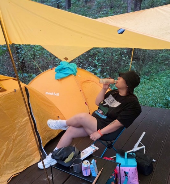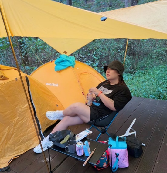 공개된 사진에는 캠핑을 떠난 풍자가 캠핑장에서 여유로운 시간을 보내고 있는 모습이 담겨 있다.