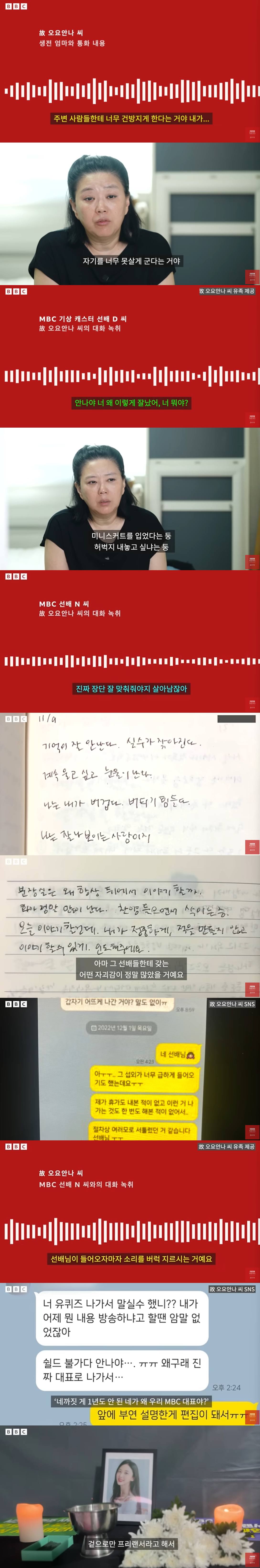 16일 유튜브 채널 'BBC News 코리아'에는 "고 오요안나 1주기, 엄마가 공개한 '죽음의 기록'"이라는 제목의 영상이 게재됐다.