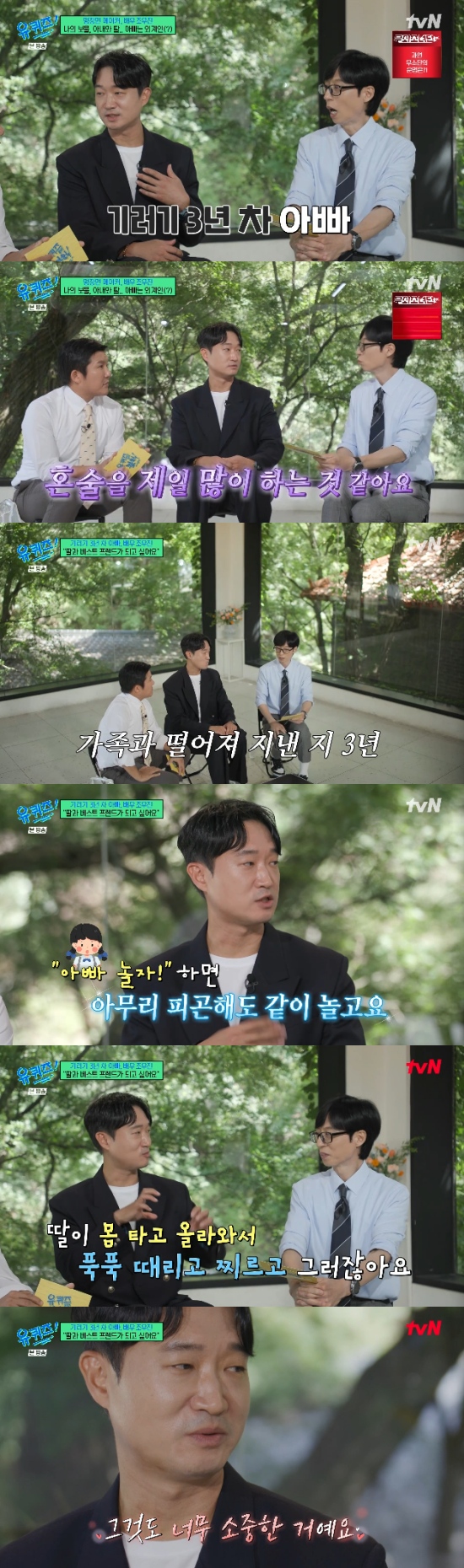 (엑스포츠뉴스 오수정 기자) '유퀴즈'에서 배우 조우진이 현재 기러기 아빠 생활을 하고 있음을 고백했다.