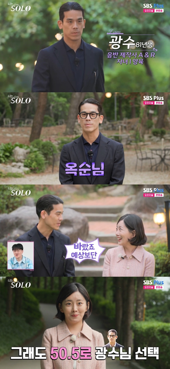 이어 "그런데 여러 가지 조건을 봤을 때 광수 님이 자녀도 있으시고 서울 사시고 가까웠다. 지금까지도 50대50인데, 50.5로 광수 님이다"라며 고민 끝에 광수를 선택했다고 설명했다.