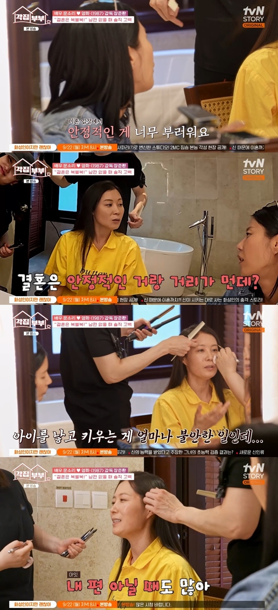 (엑스포츠뉴스 문채영 기자) '각집부부'에서 문소리가 결혼 직전 남편이 전여친과 다정하게 통화를 했다고 폭로했다.