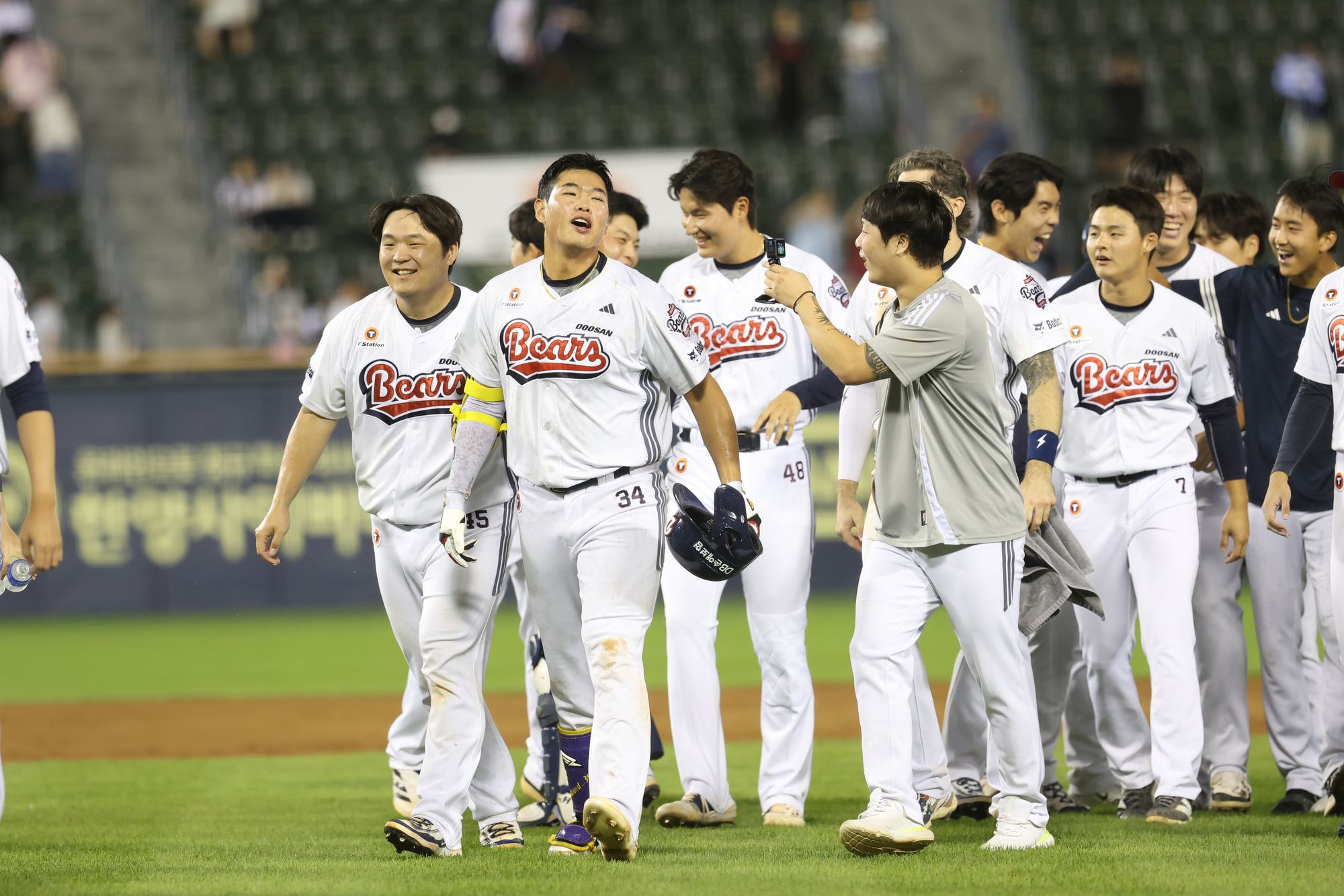 두산은 18일 서울 잠실야구장에서 열린 2025 신한 SOL Bank KBO리그 키움 히어로즈와 홈경기에서 3-2 끝내기 역전승을 거뒀다.