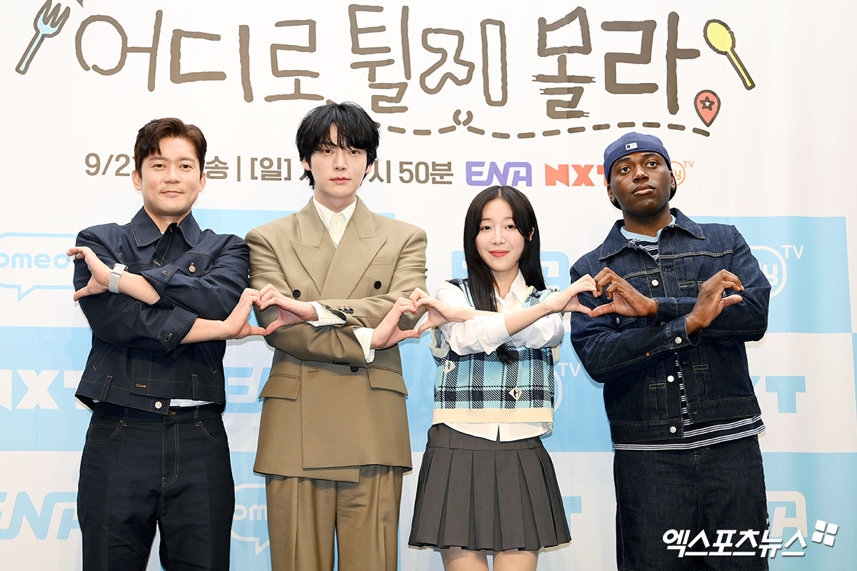 19일 서울 마포구 스탠포드 호텔에서 ENA, NXT, 코미디TV '어디로 튈지 몰라' 제작발표회가 진행됐다. 이날 방송인 김대호, 안재현, 쯔양, 조나단이 참석했다.