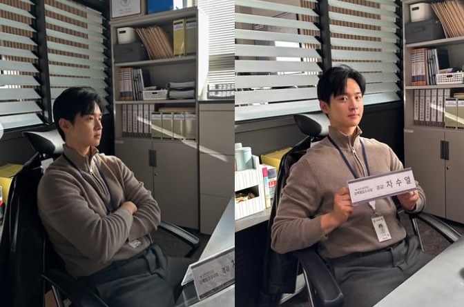 이어진 사진에서는 장동윤이 차수열의 명패를 들고 옅은 미소를 지은 채 카메라를 응시하는 모습이 공개됐다.