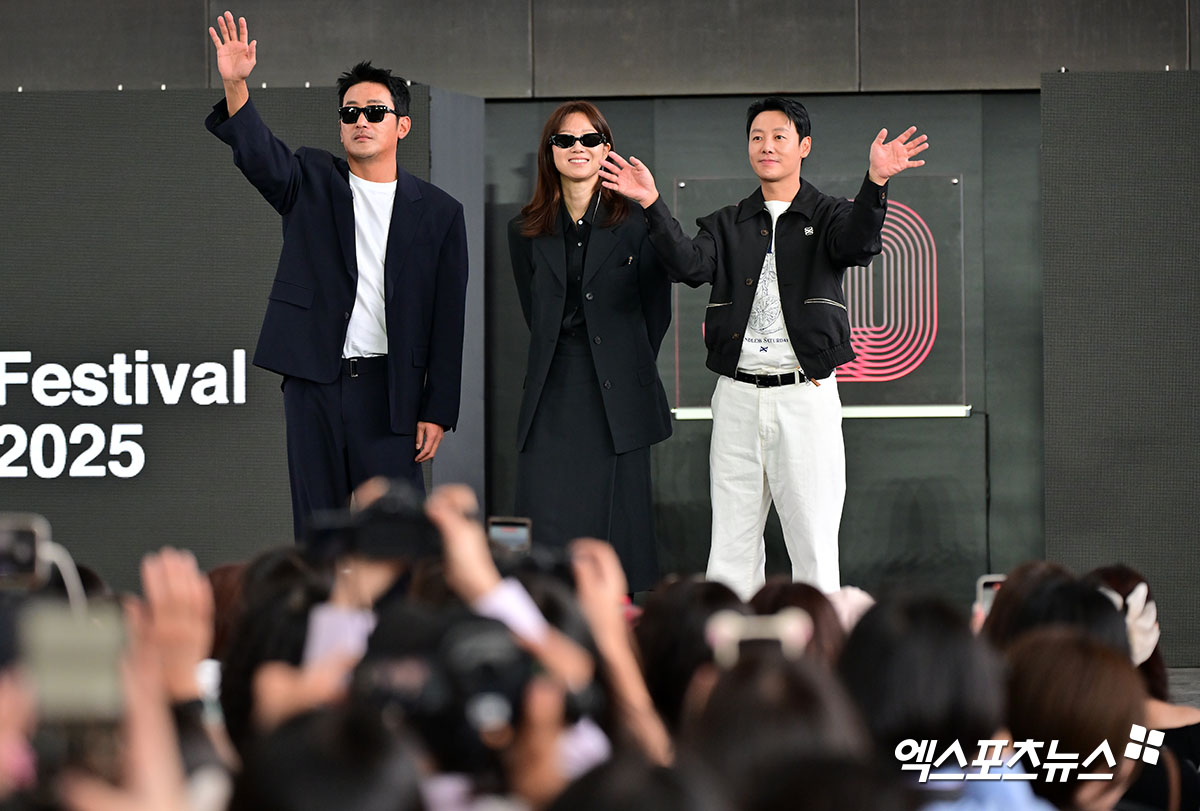 이날 배우들의 이야기를 더 가까이서 보기 위해 영화의전당 현장에는 수많은 영화제 관객들이 자리했다. 영화의 전당에서의 첫 번째 야외 일정은 하정우가 연출한 영화 '윗집 사람들'이었다.