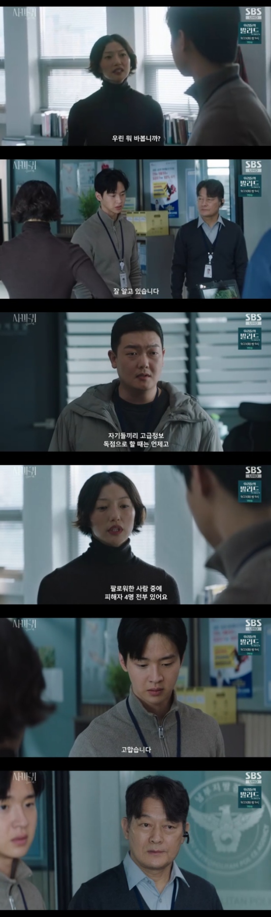 김나희 역시 생각 끝에 "데이트앱이다. 조이라는 여자인데 팔로우 하는 사람중에 피해자 4명 다 있다. 여기 말로워 중에 다음 피해자 나올 가능성이 높다"면서 자신들이 찾은 단서를 차수열에게 건넸다.