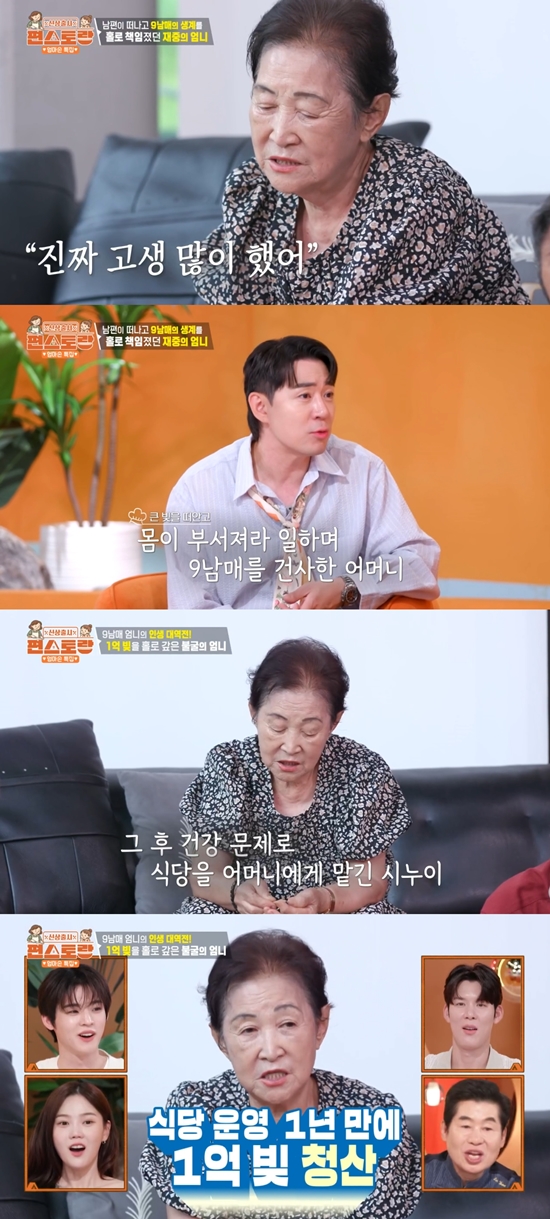 모친은 "과자 장사, 귤 장사, 인삼 장사도 해봤는데 제일 돈이 되는 건 식당이었다. 식당에서 저녁에 일당을 주면, 그거 가지고 아이들을 먹여 살렸다"라며 생계를 위해 식당 일을 시작했다고 설명했다.