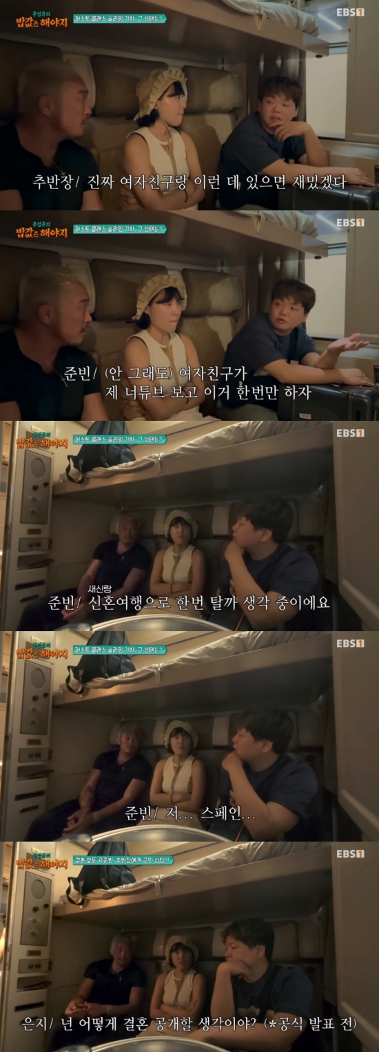 이은지는 "커플들도 기차여행을 많이 하더라"며 운을 뗐고, 추성훈은 "여자친구랑 이런 데 있으면 재밌겠다"고 이야기를 꺼냈다.