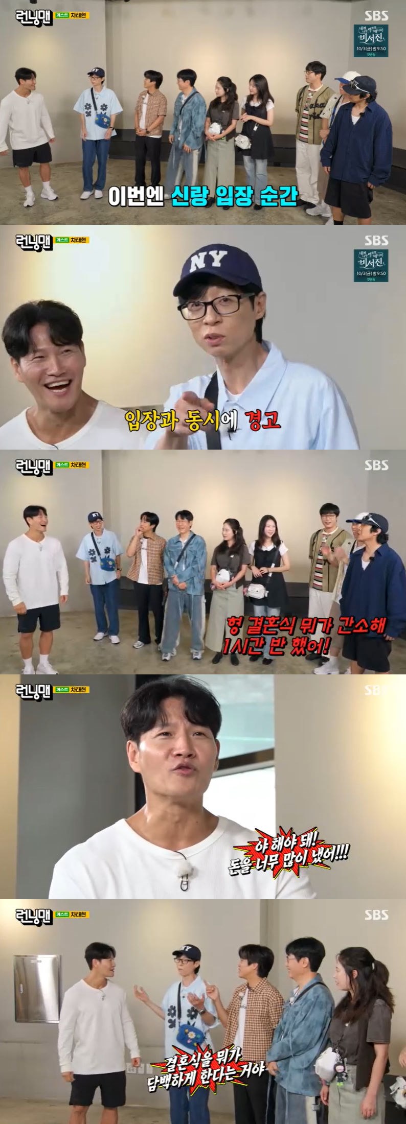 하하는 김종국에게 "형 결혼식 뭐가 간소하냐. 한 시간 반 했다"라고 말했고, 이에 김종국은 "그렇게 해야 된다. 돈을 많이 냈다"며 웃음을 줬다.