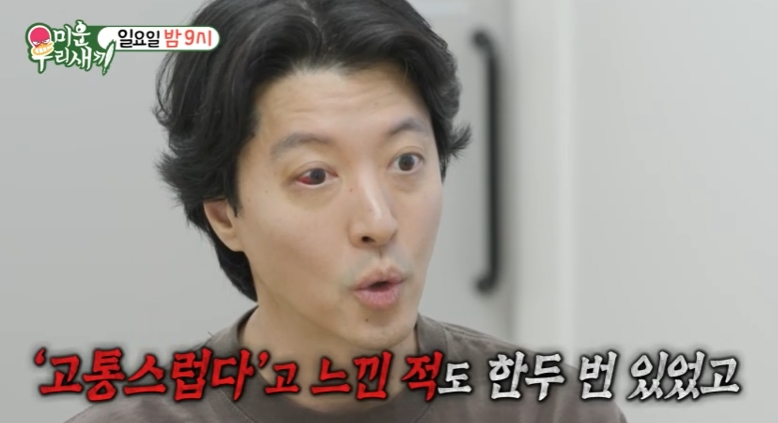 이동건은 "고통스럽다고 느낀 적도 한두 번 있었다. 송곳으로 찌르는 느낌이 승모근 쪽 아래로 있었다. 숨만 쉬어도 찌르는 듯한"이라며 증상을 고백했다.