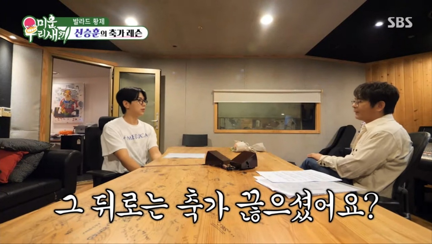 이에 신승훈은 "다 잘 살고 있지"라며 뿌듯해하더니 "나만 이러고 있지"라고 덧붙여 웃음을 자아냈다.