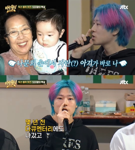 그는 "신지 씨 아들로 나왔었다. 몇 년 전에 다큐멘터리에도 나갔다"고 덧붙였는데, MC 이특이 "그 때 기억나요?"라고 묻자 "안 나죠"라고 답했다.