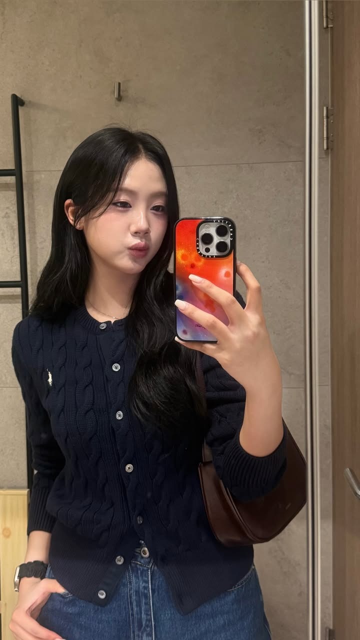 사진 속 재시는 긴 생머리에 청순한 분위기를 풍기면서도 세련된 패션 센스로 시선을 사로잡았다. 네이비 컬러의 니트 카디건과 데님 팬츠를 매치해 깔끔하면서도 성숙한 매력을 드러냈다.