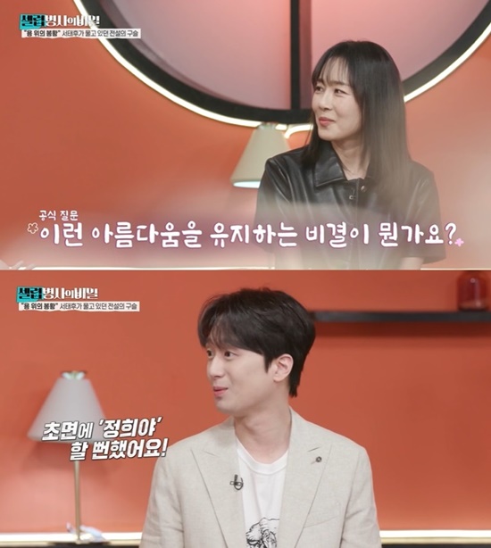 이날 MC 장도연은 "그런 얘기 많이 들으시지 않냐. '이런 아름다움을 유지하는 비결이 뭐냐'고"라고 질문하며 쑥스럽게 웃었다.