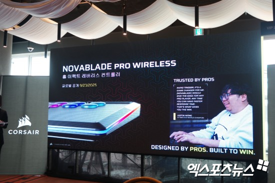 '노바블레이드 프로 레버리스 컨트롤러'도 소개됐다. 이 기어는 격투 게임에 특화된 컨트롤러로, 커세어MGX 하이퍼 드라이브, 마그네틱 스위치, 래피드트리거(Rapid Trigger), 플래시탭 동시입력(FlashTap SOCD) 기술을 탑재했다. 극한의 성능을 원하는 게이머들을 위한 초정밀 입력을 특징으로 하며, 연내 국내 출시 예정이다.