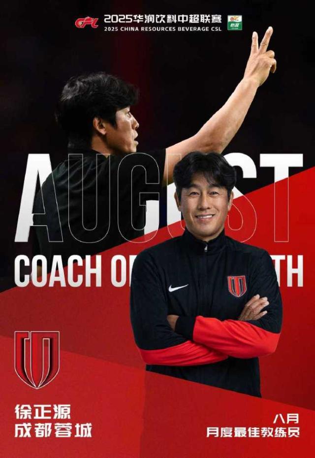 중국 스포츠 신문 '체단주보(타이탄 스포츠)'는 25일 "중국 슈퍼리그가 발표한 8월 최고의 감독으로 청두 룽청의 서정원 감독이 선정됐다"고 밝혔다.