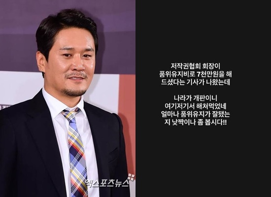 JK 김동욱은 26일 자신의 계정에 “저작권협회 회장이 품위유지비로 7천만 원을 해 드셨다는 기사가 나왔는데, 나라가 개판이니 여기저기서 해쳐 먹었네”라는 글을 게재했다.