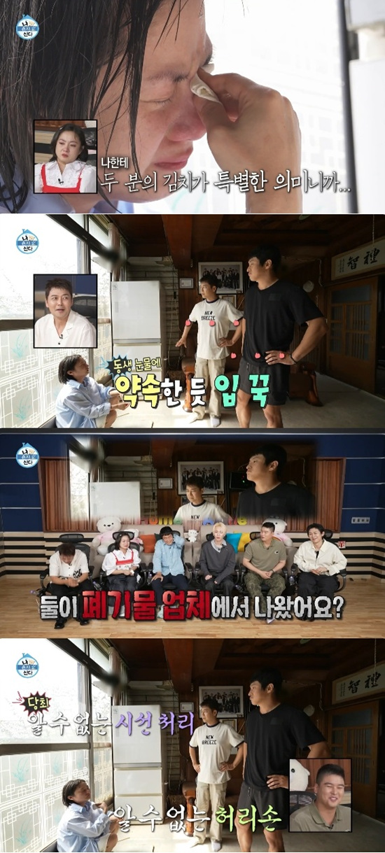 박나래는 냉장고 안을 살펴보다가 할머니 김치를 보고 그대로 울음이 터졌다. 박나래는 "이게 감당이 안 된다"고 했다.