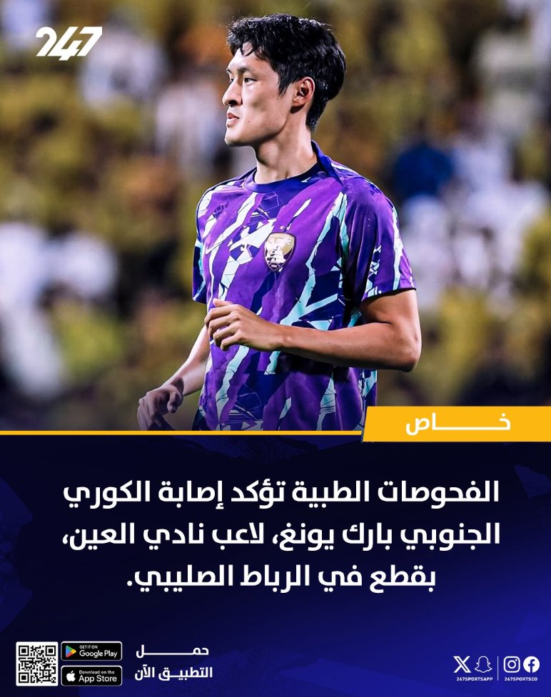 글로벌 축구매체로 중동 축구뉴스에 밝은 '247스포츠'는 27일(한국시간) 사회관계망서비스(SNS)를 통해 "알아인의 대한민국 선수 박용우가 전방십자인대(ACL) 파열로 시즌을 일찍 끝냈다. 빠른 회복을 기원한다"라고 보도했다.