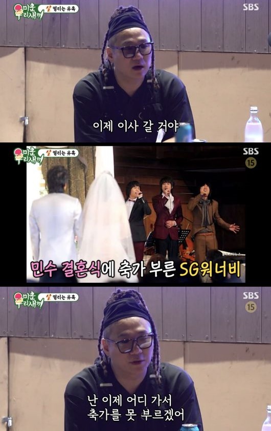 김용준은 "형 기억하냐. 형수님과 결혼할 때 제가 축가를 했었다"고 당시를 떠올렸다. 이에 윤민수는 "난 이제 어딜 가도 축가를 못 부르겠다. 자격이 없다고 생각한다"고 이혼 이후 축가를 부를 수 없다고 고백했다.