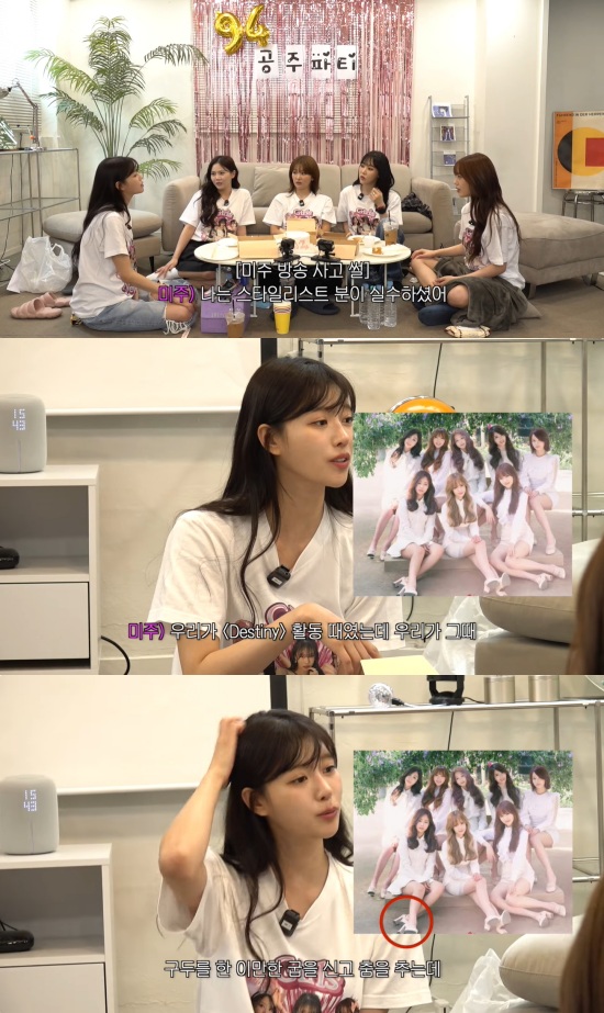 다양한 주제로 이야기를 나누던 중 '기억에 남는 방송사고'라는 주제가 나오자 이미주는 "나는 스타일리스트 분이 실수하셨다. 우리가 'Destiny' 활동할 때였는데, 이만큼 높은 굽을 신고 춤을 췄다. 보니까 밑창이 까져 있었다"고 회상했다.