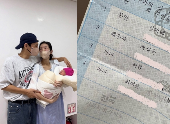 지난 28일 김지혜는 "둥이들 이름이 생겼어요. 최봄 (첫째, 여자아기, 전 배코), 최여름 (둘째, 남자아기, 전 요롱이)"라며 등본 사진과 함께 자녀들의 이름을 공개했다.