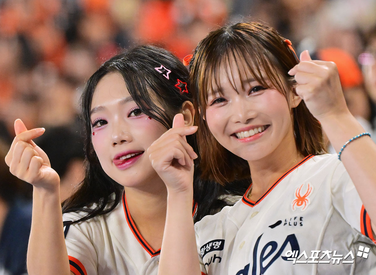 (엑스포츠뉴스 대전, 김한준 기자) 29일 오후 대전 한화생명 볼파크에서 열린 '2025 신한 SOL Bank KBO리그' LG 트윈스와 한화 이글스의 경기, 지아영-아야카 치어리더가 포즈를 취하고 있다.