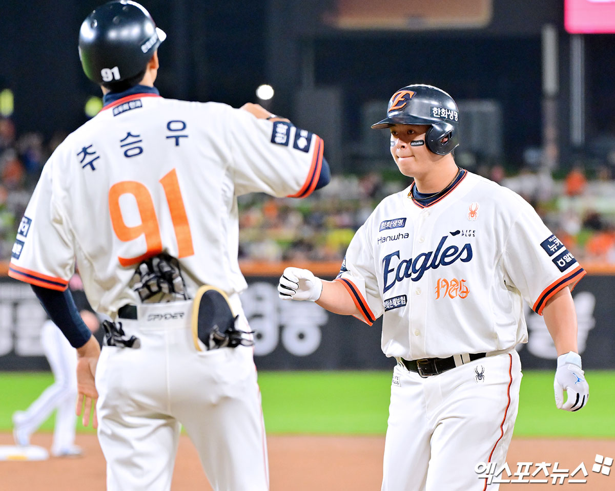 순위를 뒤집기 위한 경우의 수는 분명 줄어들었지만, 지금 분위기는 다르다. 대전 안방에서 라이벌 LG가 우승 축배를 터트리는 상황도 일단 막았다. 노시환은 "끝까지 포기하지 않고 유종의 미를 다하기 위해 최선을 다할 생각"이라며 "오늘 이긴 분위기 타서 남은 경기 다 잡도록 노력하겠다"는 당당한 각오를 밝혔다.