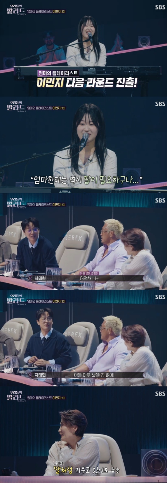 다음 라운드 진출에 성공한 이민지에게 차태현은 "노래를 듣는데, '엄마한테는 딸이 필요하구나' '서로 위로할 수 있는 존재가 필요하구나'라는 생각이 들었다"고 했고, 박경림도 "이 노래 한 곡이 엄마한테 너무 큰 위로가 될 것 같다"면서 미소를 지었다.