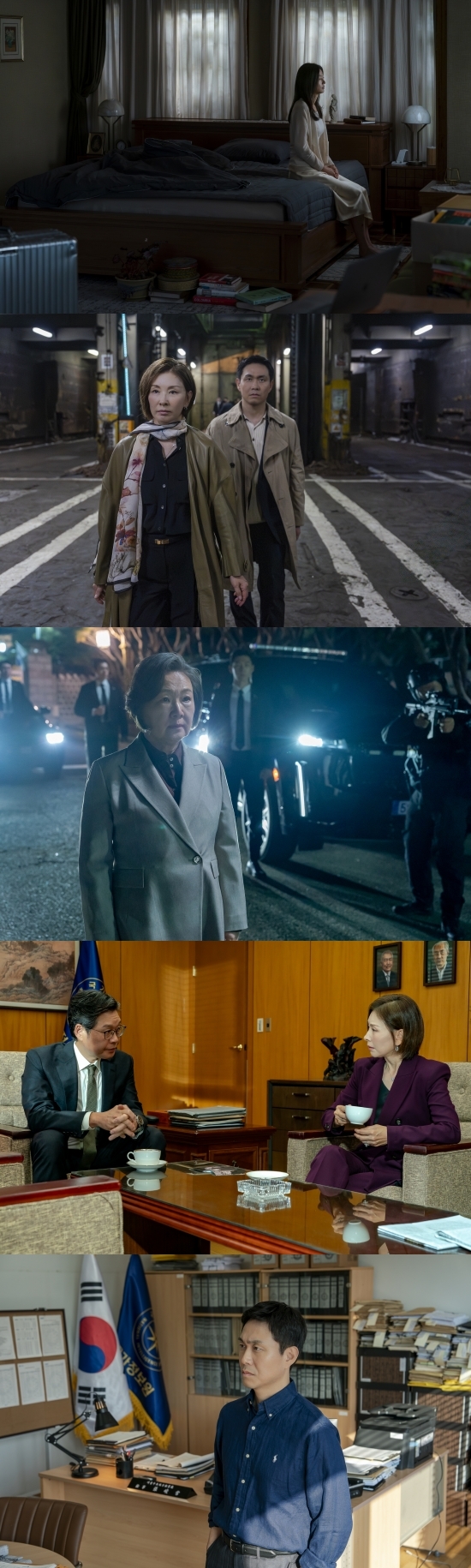 먼저, 서로를 애틋한 눈빛으로 바라보고 각자의 자리에서 진실을 밝히기 위해 최선을 다하는 문주와 산호의 모습은 첩보 멜로의 장르적 재미를 배가시키는 완벽한 케미스트리를 자아낸다. 여기에 더해, 옥선(이미숙)부터 경신(김해숙), 운학(유재명), 준상(오정세), 창희(주종혁)까지, 비장한 표정으로 사건의 심각성을 짐작하게 하는 인물들의 모습은 이들이 얽히고설키며 펼쳐질 휘몰아치는 전개를 향한 기대를 높인다.