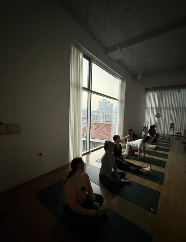 공개된 사진 속에는 오전 6시 30분, 새벽 수업을 듣기 위해 요가원을 찾은 수강생들의 모습이 담겼다. 이른 시간부터 수련을 위해 요가원을 찾은 것.