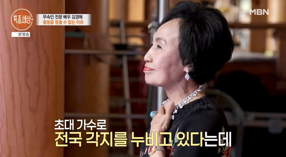 지난 2일 방송된 MBN '특종세상'에서는 배우 김경애가 출연했다. 데뷔 59년 차인 김경애는 '용의 눈물', '태조 왕건' 등에서 무속인 역을 주로 맡아 활동했다.
