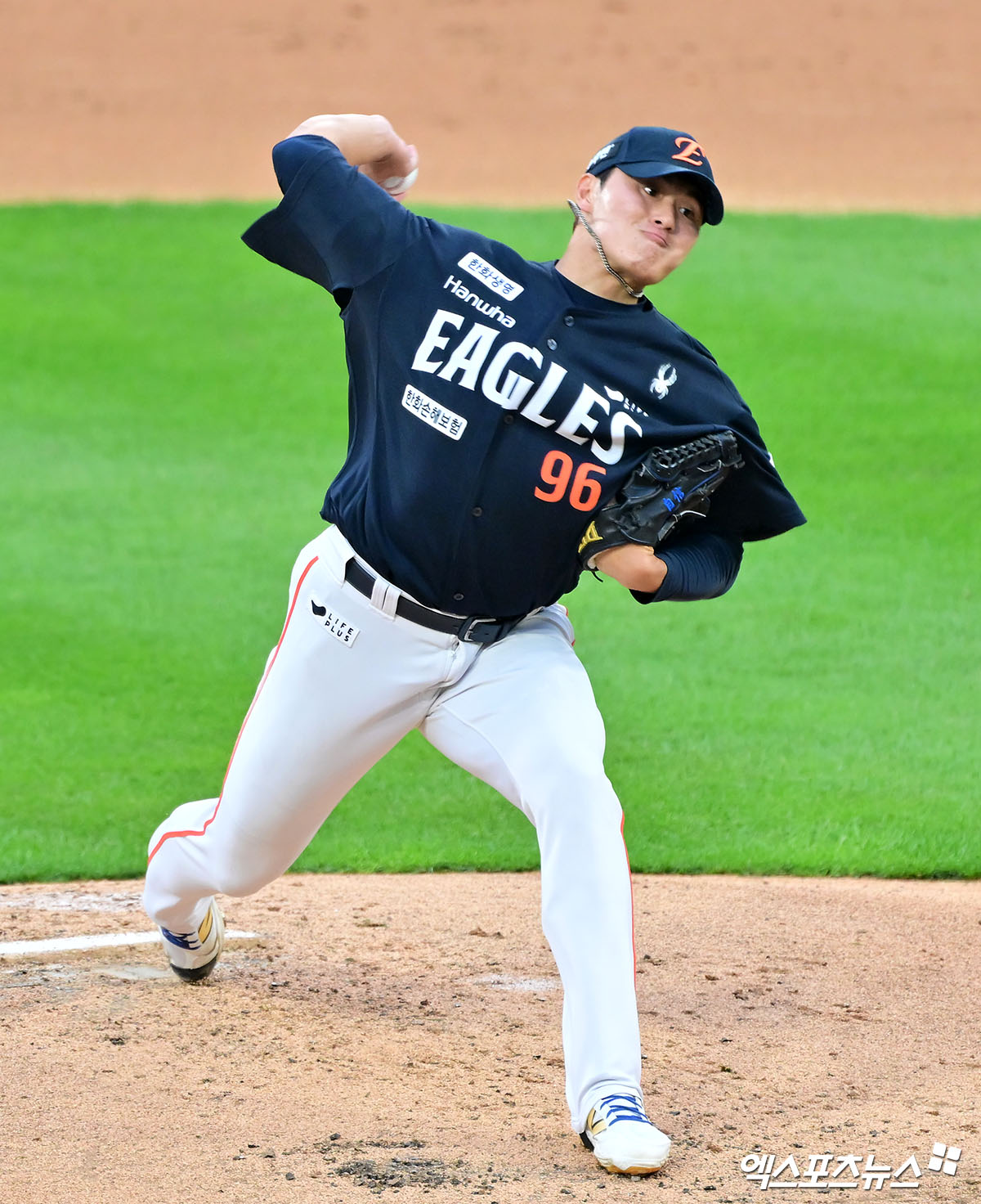 (엑스포츠뉴스 수원, 김한준 기자) 3일 오후 수원KT위즈파크에서 열린 '2025 신한 SOL Bank KBO리그' 한화 이글스와 KT 위즈의 경기, 1회말 한화 선발투수 박준영이 공을 힘차게 던지고 있다.