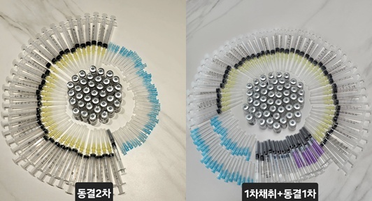 정숙이 함께 공개한 사진 속에는 수많은 주사기가 놓여있어 놀라움을 자아낸다.