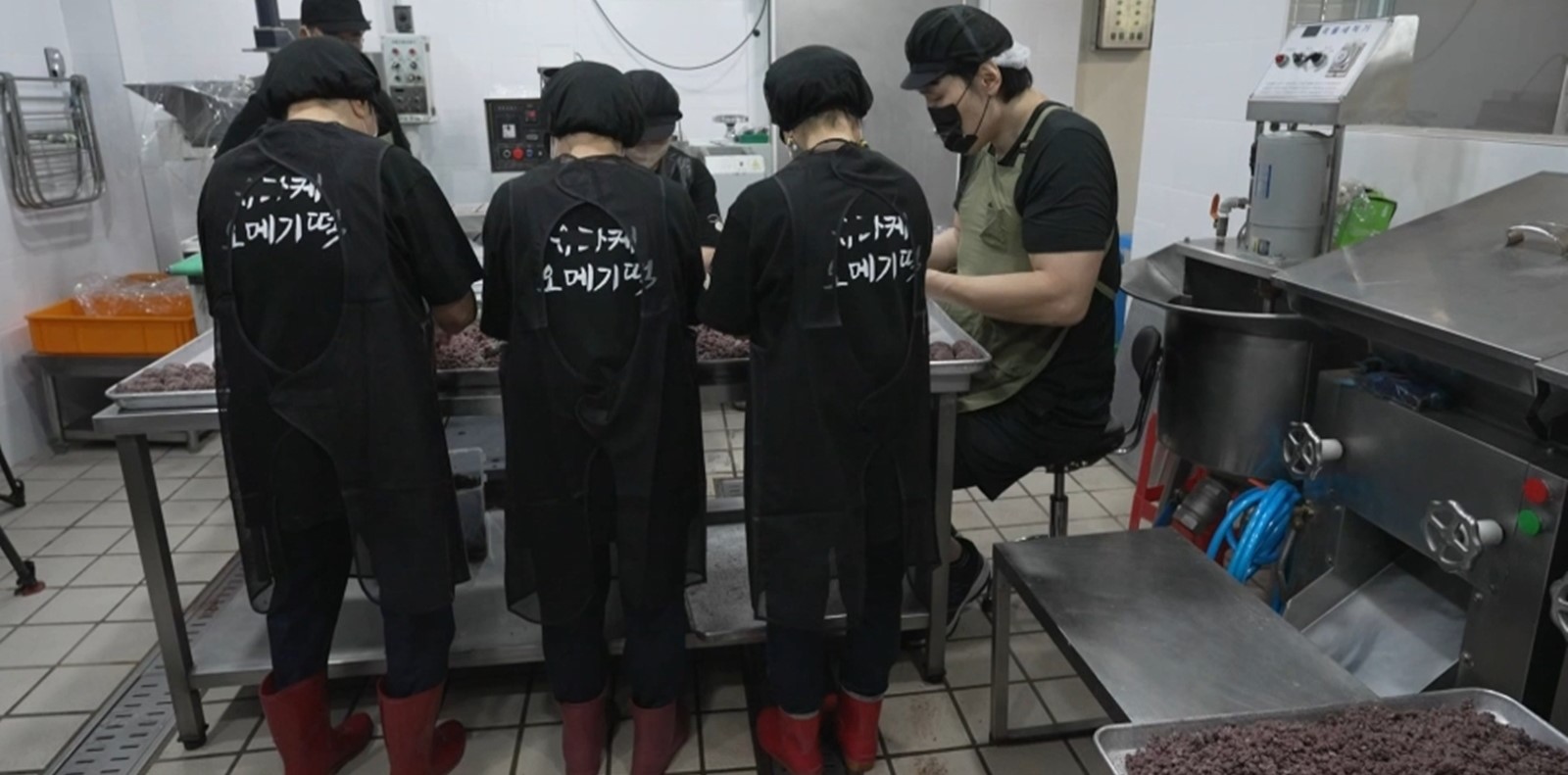 꽉 끼는 작업복으로 갈아입은 뒤 12kg에 달하는 떡 반죽을 한 손으로 번쩍 들어 올리는 괴력을 뽐낼 예정. 이어 큰 손을 활용해 떡에 고물을 빠르게 묻히는 등 '일당백' 활약을 펼친다고.