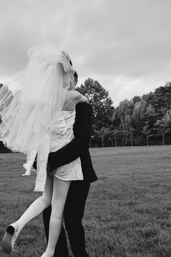 예비 신부는 미니 기장의 웨딩드레스를 입고 사랑스러운운 매력을 뽐내기도 했다.