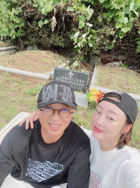 사진 속 최여진은 남편 김재욱과 성묘를 다녀오며 환하게 웃고 있다.