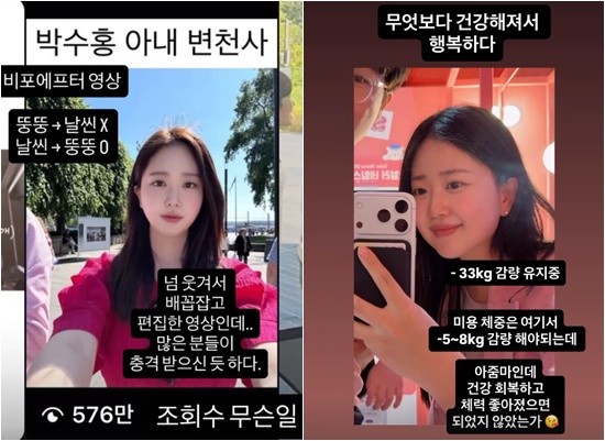 '박수홍 아내 변천사' ♥김다예, 직접 공개한 33kg 감량 전 "많이 충격받은 듯" [★해시태그]