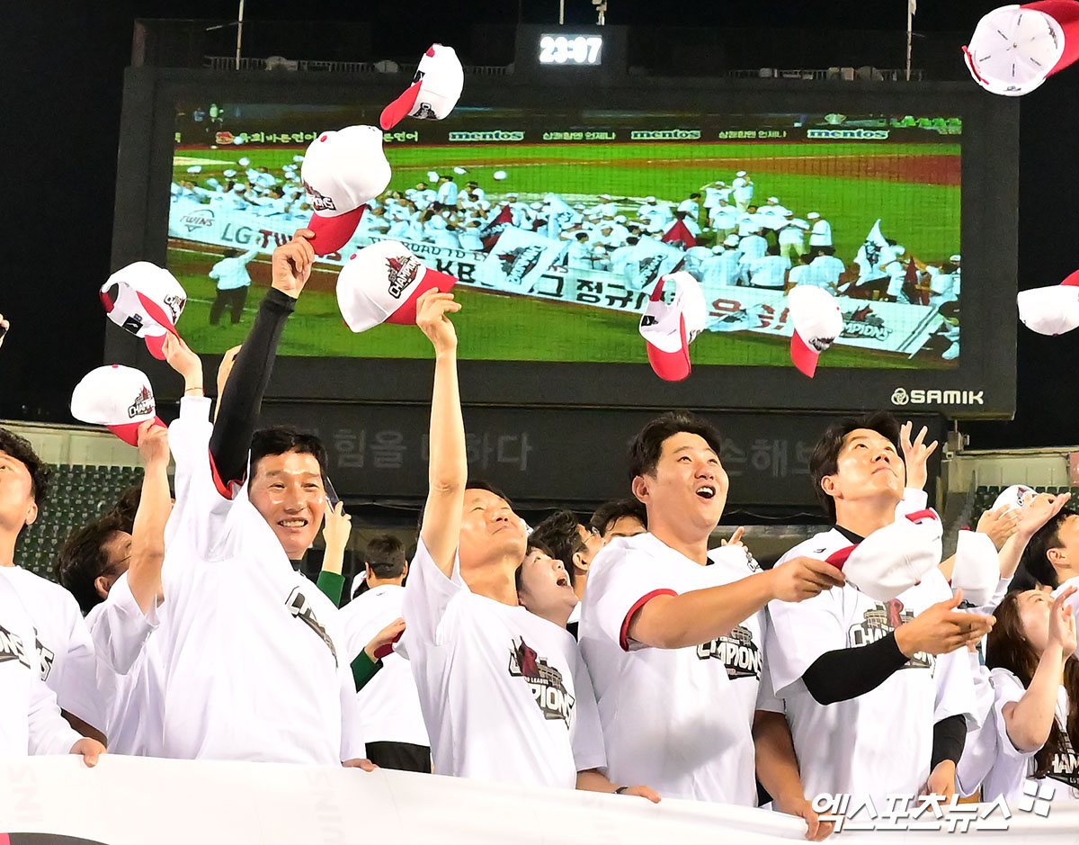 LG는 지난 1일 정규시즌 최종전이었던 잠실 NC 다이노스전에서 3-7로 패했다. 그러나 같은 날 인천 경기에서 2위 한화 이글스가 SSG 랜더스에 역전 끝내기패를 당하면서 자동으로 LG의 정규시즌 우승이 확정됐다.